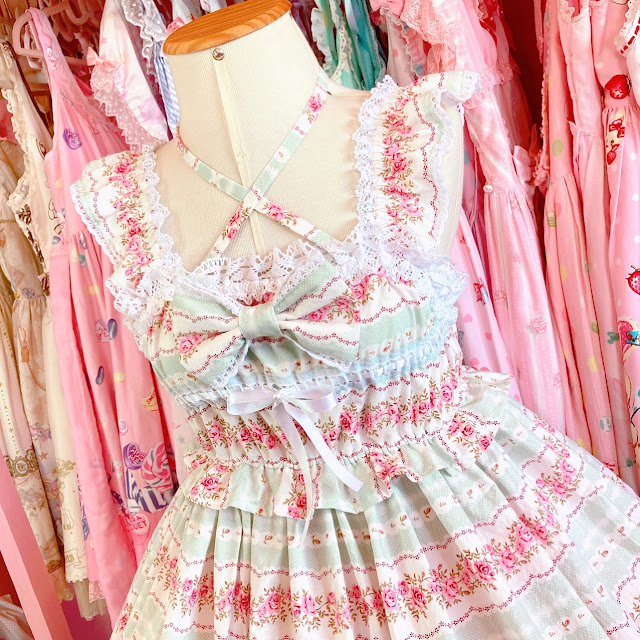 The inspiration I found was BtSSB Gingham Rose Ribbon Jsk, which print and color reminds me so much of this fabric!